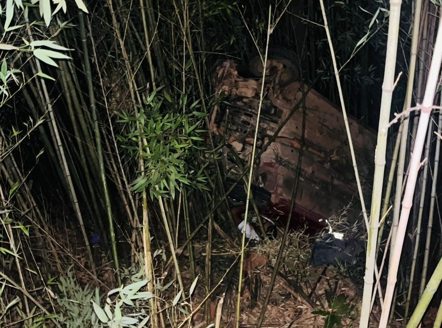 Acidente entre carros mata três na RJ-155, em Rio Claro; um dos veículos despencou de ribanceira