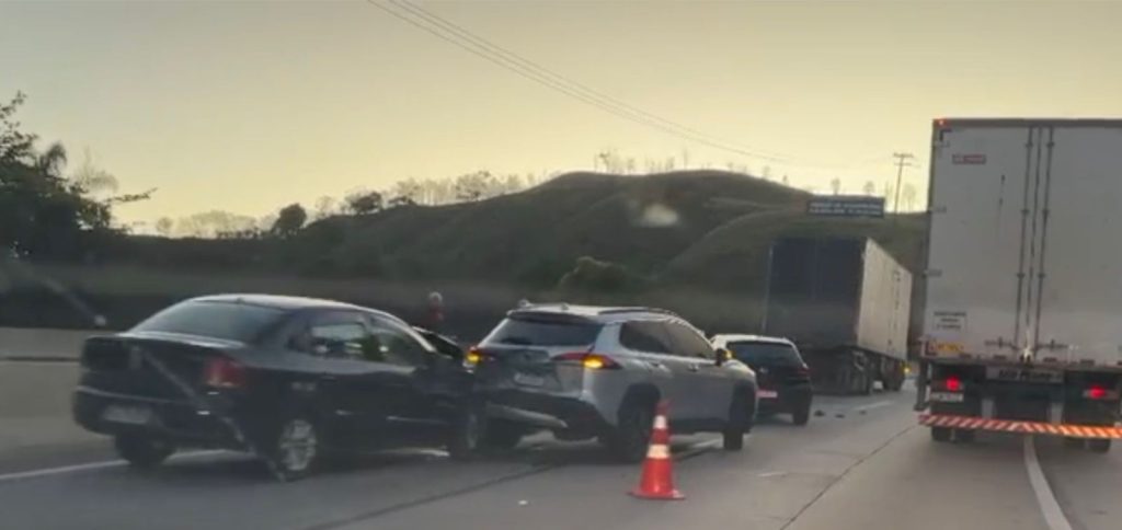 Engavetamento entre quatro veículos deixa uma pessoa ferida na Via Dutra, em Barra Mansa