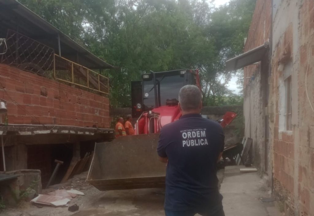 Muro com seteiras usado por criminosos é demolido em operação em Volta Redonda