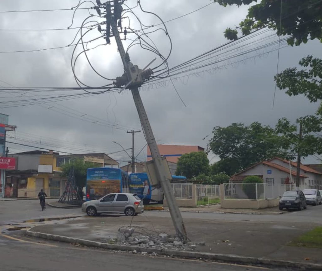 Caminhão atinge poste e rompe cabos de energia em Resende
