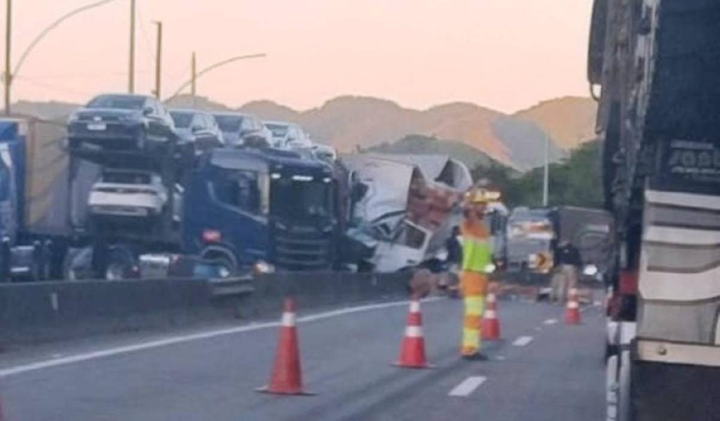Engavetamento entre seis veículos deixa um ferido na Via Dutra, em Paracambi