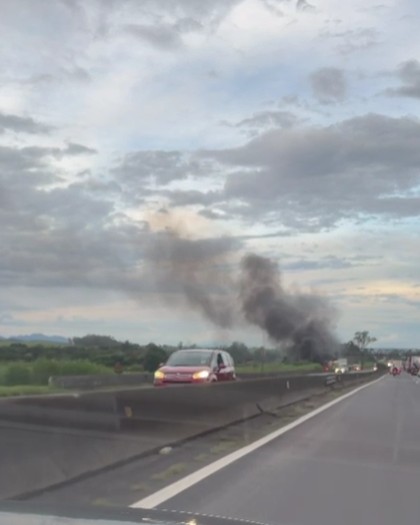 VÍDEO: Carreta pega fogo e assusta motoristas na Via Dutra, em Itatiaia