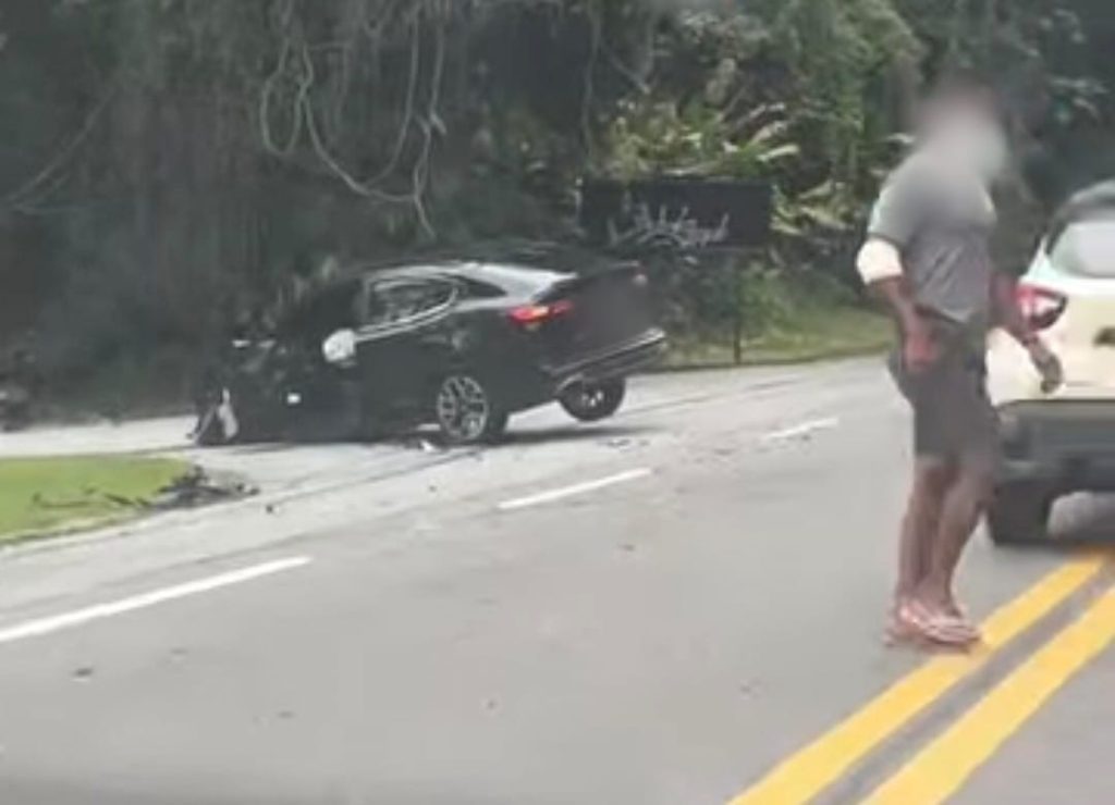 Acidente entre carro e moto deixa duas pessoas feridas na BR-101, em Angra dos Reis