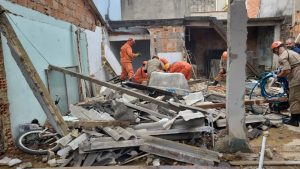 Desabamento aconteceu durante um trabalho de demolição no bairro Cidade Alegria. Divulgação/Defesa Civil Dois homens ficaram feridos após o desabamento da laje de uma casa