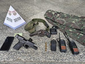 Ainda de acordo com a PM, foram apreendidos um revólver calibre .38 e 24 munições intactas.