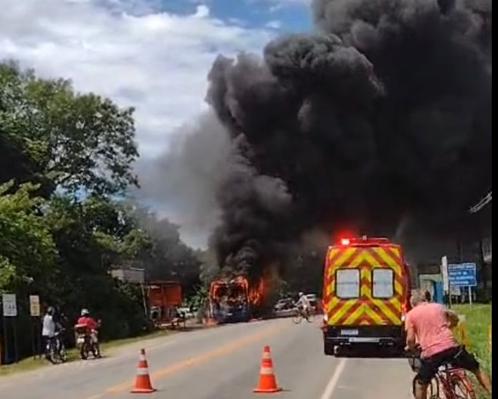 Um ônibus pegou fogo na manhã deste domingo (13) em Paracambi (RJ). O incêndio aconteceu RJ-127, altura do bairro Guarajuba, próximo ao número 9095.