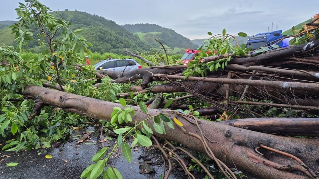 Segundo a Polícia Rodoviária Federal, um carro, que estava na pista sentido São Paulo, foi atingido pela árvore. Ninguém ficou ferido.